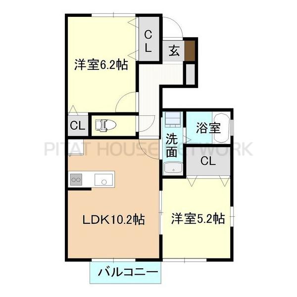 -2LDK 62.91㎡ 詳細を見る お問合せ(無料) - バス・トイレ別