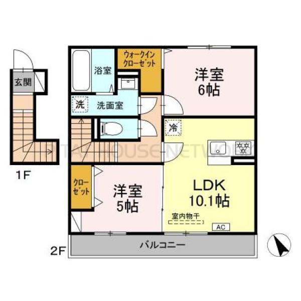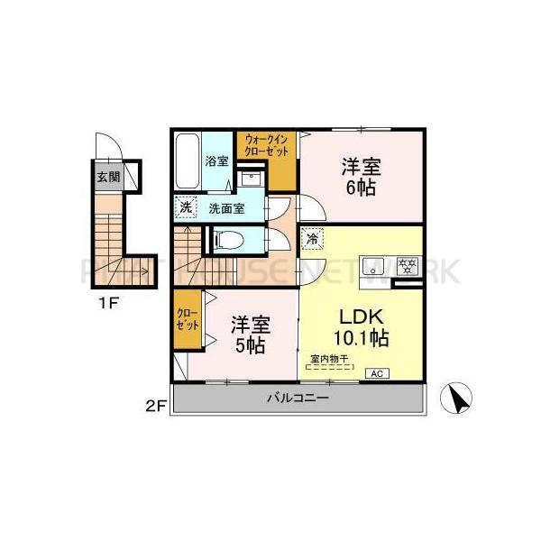 南西向き1LDK 2階