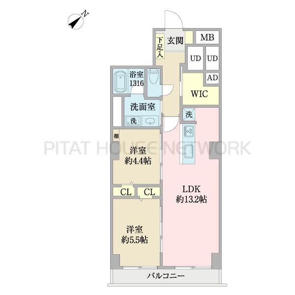 | 専有面積 | 61.82㎡ | 間取り | 2LDK |