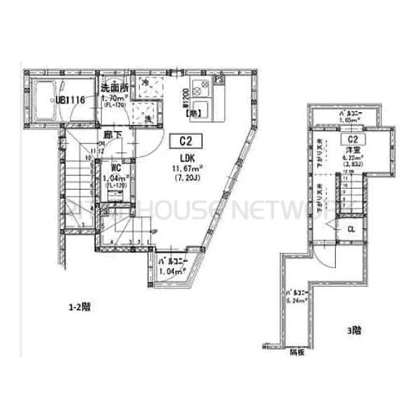 専有面積お気に入り 1-2階