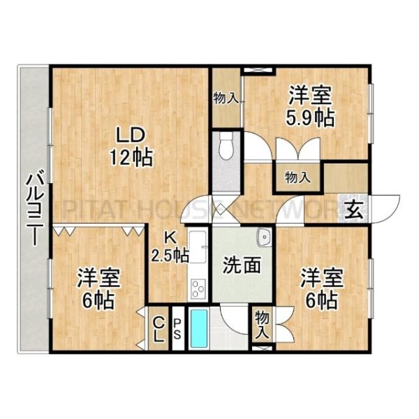 賃料: 5.9万円 〜 6.2万円