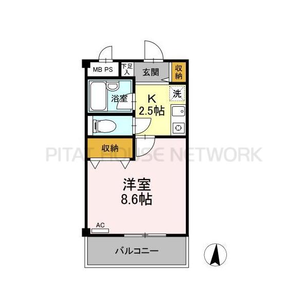 -1K 28.0㎡ 詳細を見る お問合せ(無料) - バス・トイレ別