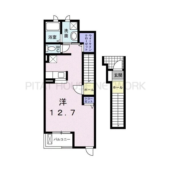 賃貸アパート ペシュール西小二里(205)  賃料: 5万円 和歌山県和歌山市西小二里3丁目 南海電鉄南海本線 和歌山市駅 バス11分 「花王橋」 徒歩5分