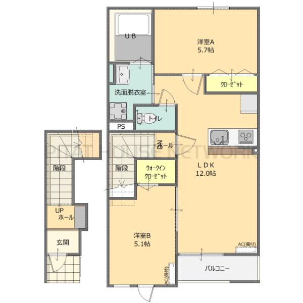 賃料: 5.7万円 〜 6.4万円