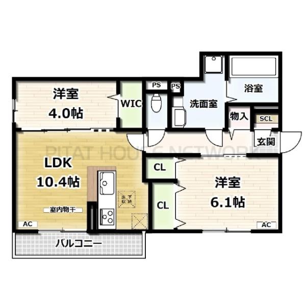 賃料: 5.8万円 〜 6.1万円