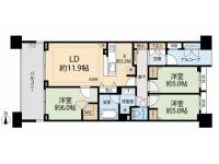 棟によって日照や景色は全く違う。極々普通の田の字の間取り。 天井高2、4m、バルコニー奥行2m、スロップシンク付き、隣との境がペラボーじゃないなど、最近のマンションと比べると十分な設備、コスパが良い。 |
