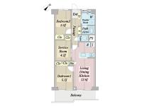 コンパクトに良くまとまった使いやすい2LDK。夫婦二人や独身者には十分な広さがあり、ベランダの両側には綺麗な街路樹もあり、心地良い。